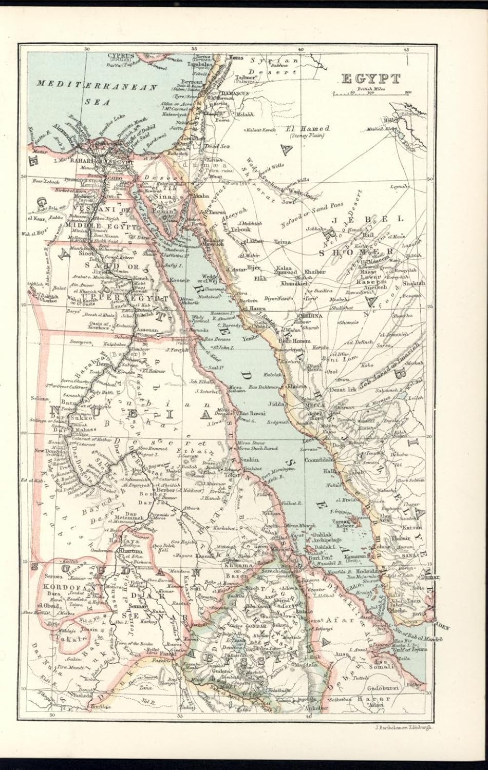 Egypt Red Sea Sinai Peninsula Nile Delta Abyssinia 1885 Vintage