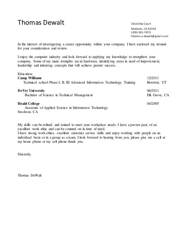 Thomas Dewalt Cover Letter