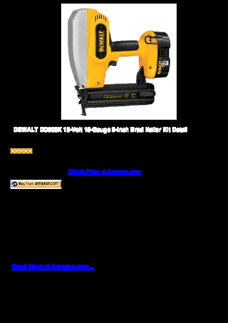 Dewalt Dc608 K 18 Volt 18 Gauge 2 Inch Brad Nailer Kit