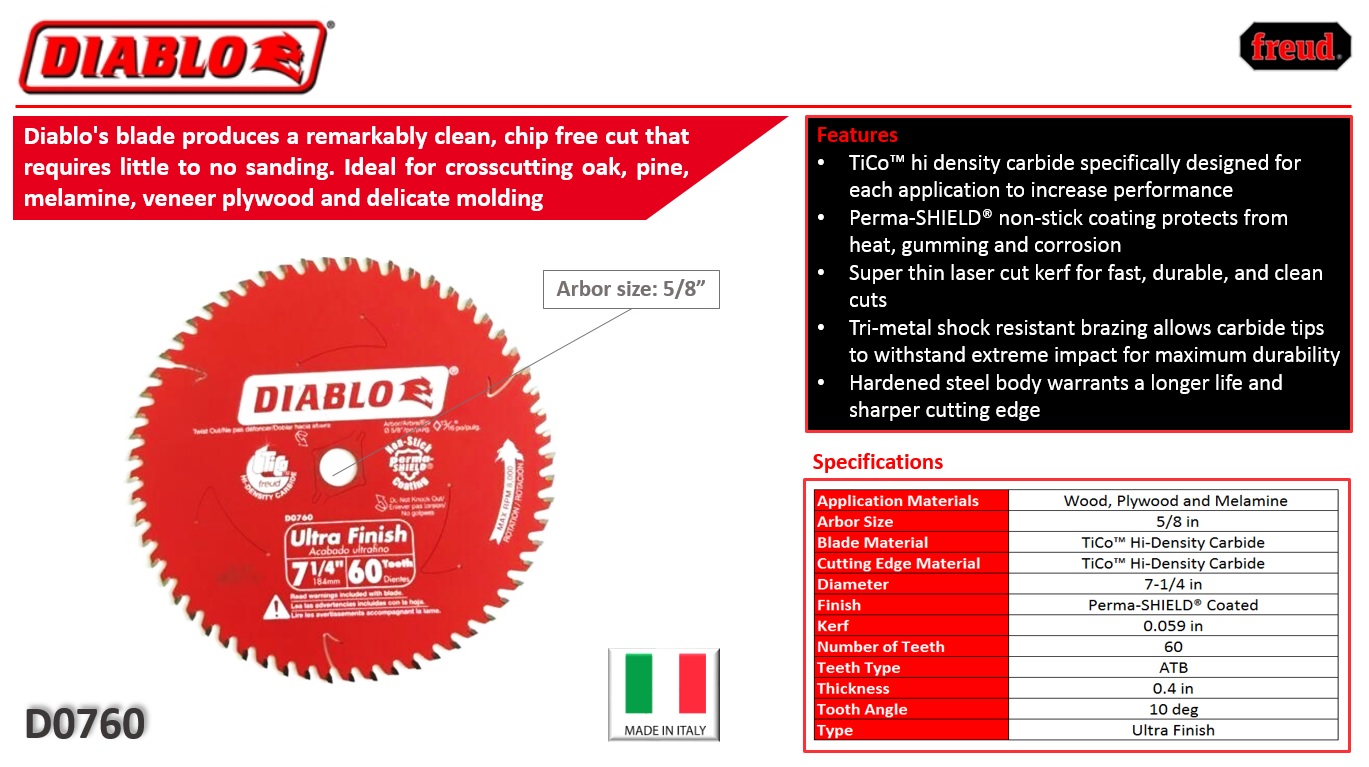 Freud D0760a Diablo 7 1 4 X 60 Tooth Ultra Fine Finishing Circular