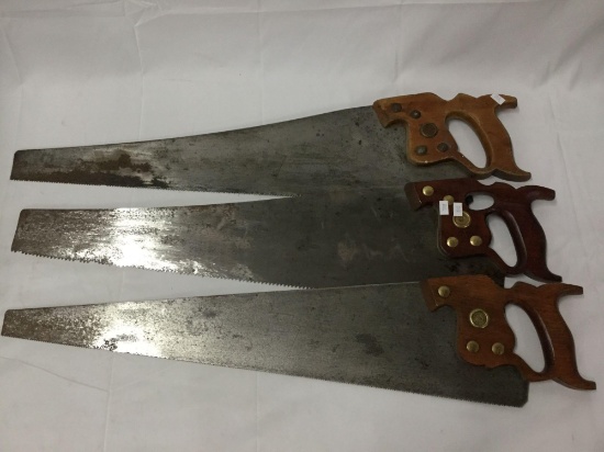 3 Vintage Disston Hand Saws 29 Inches Long Marked D7 And D8
