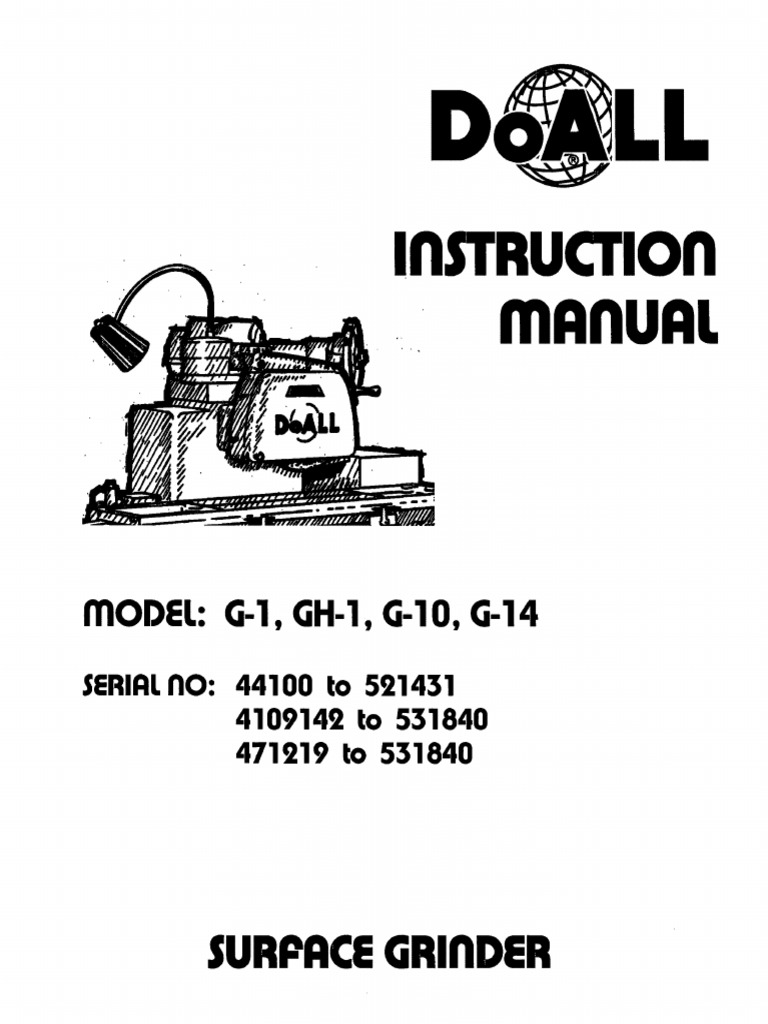 Doall G 10 G 14 Surface Grinder Instruction Parts Manual
