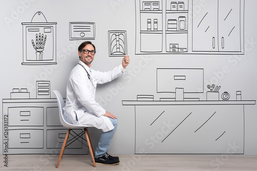 Positive Doctor Sitting On The Chair Stock Photo And Royalty