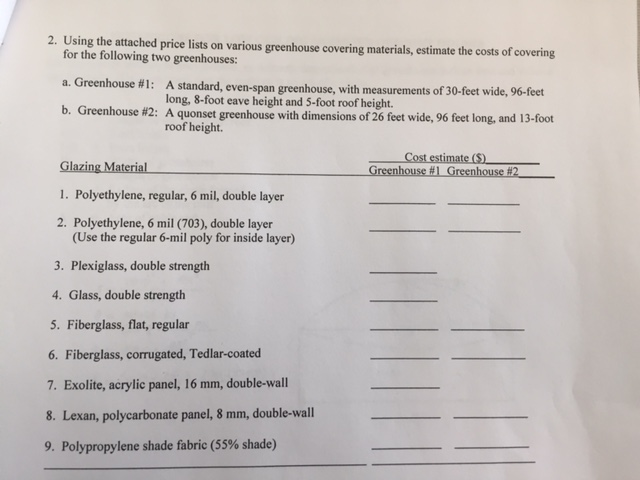 Solved Using The Attached Price Lists On Various Greenhou