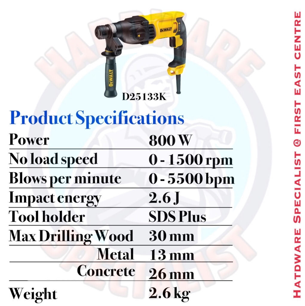 Dewalt 800w Rotary Hammer Drill D25133k Brand New Shopee Singapore