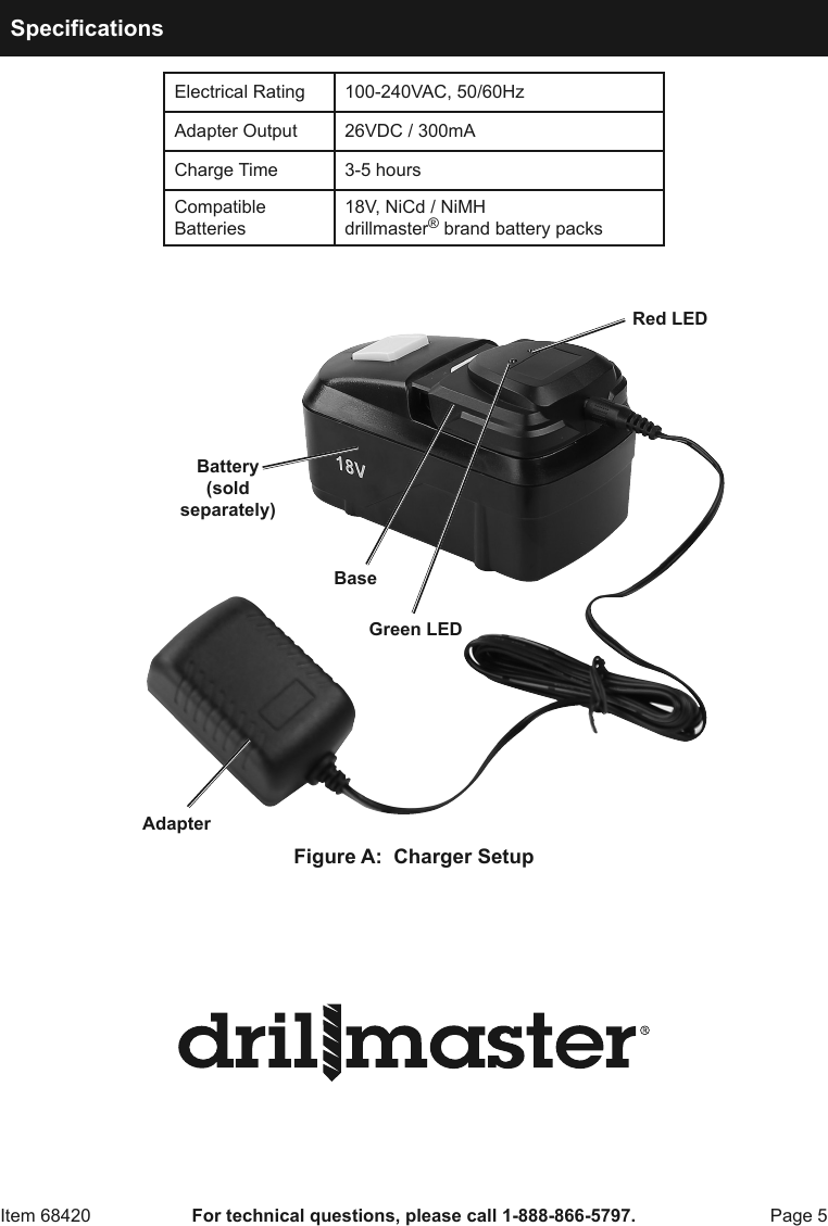 Drillmaster 68420 18 Volt Nicd Battery Charger For