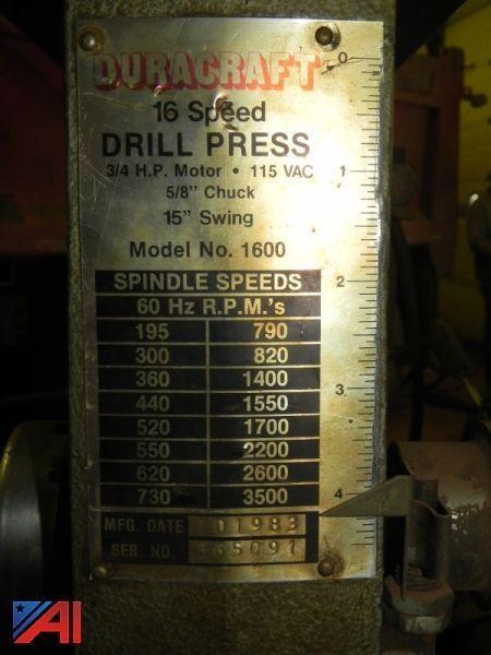 Duracraft Model 1600 5 8 Capacity 16 Speeds Drill Press Heavy
