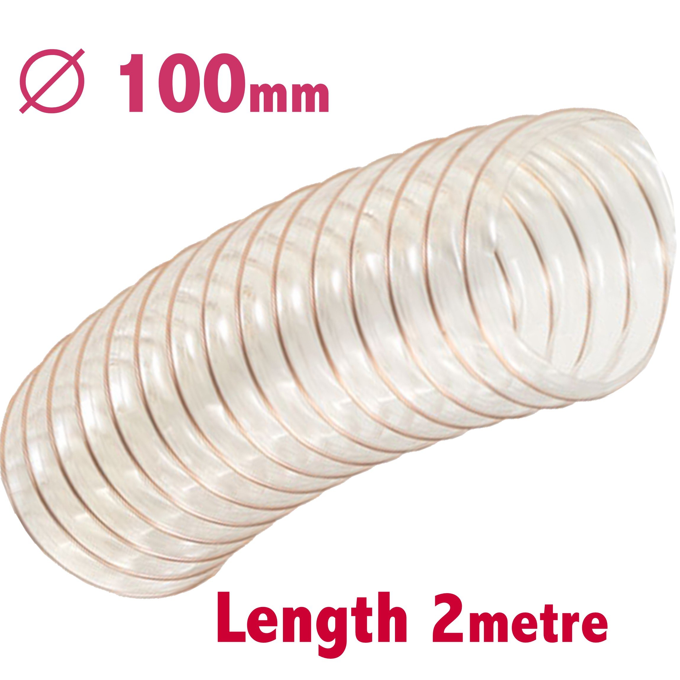 Flexible Clear Dust Extractor Hose 100mm Id X 2m Length Sawdust