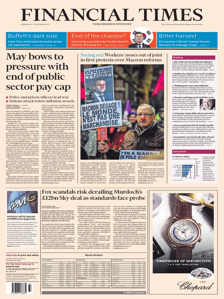 Financial Times Uk 13 September 2017 Rupert Murdoch Inflation