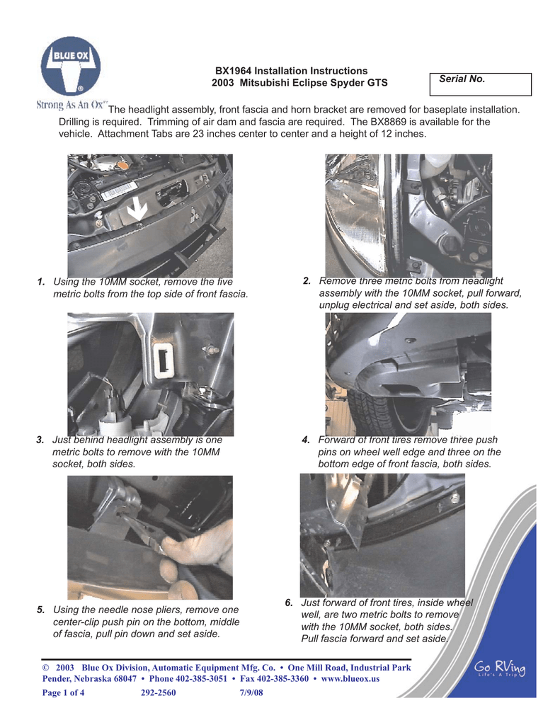 Bx1964 Installation Instructions 2003 Mitsubishi Eclipse Spyder