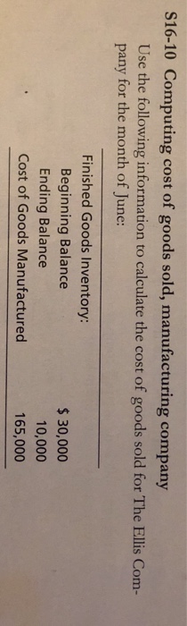 Solved S16 10 Computing Cost Of Goods Sold Manufacturing