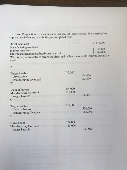 Solved 10 Farrel Corporation Is A Manufacturer That Uses