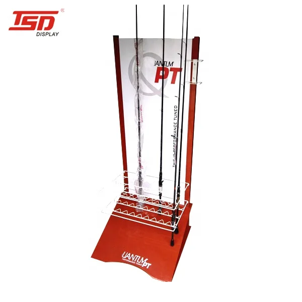 Retail Store Metal Fly Telescopic Fishing Rod Floor Display Stand