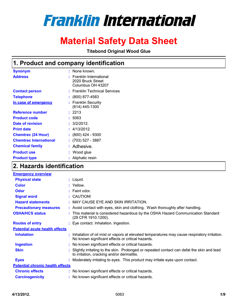 Titebond Iii Ultimate Wood Glue Msds Number Highland