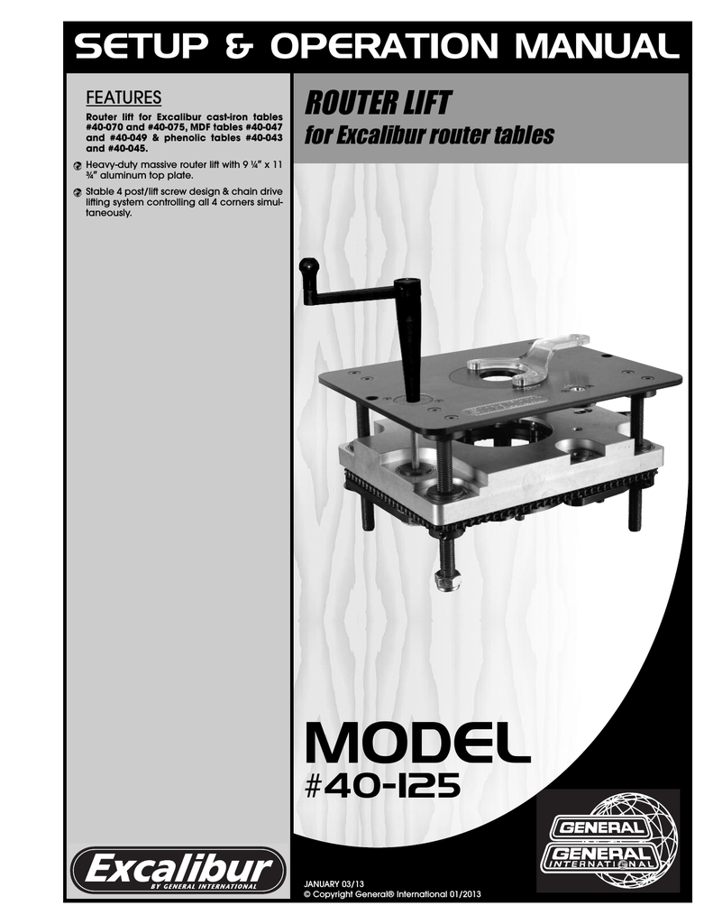 Subscribe to this channel for new weekly video. General international introduced their new excalibur deluxe router table kits in bench top and floor modelsthe table top router kit can also be mounted to a tablesaw. Now the renamed excalibur by general brand is a very successful and integral part of our product line up. The contractor heavy duty massive router lift has a 9 14 inch x 11 34 inch aluminum inserttop plate.