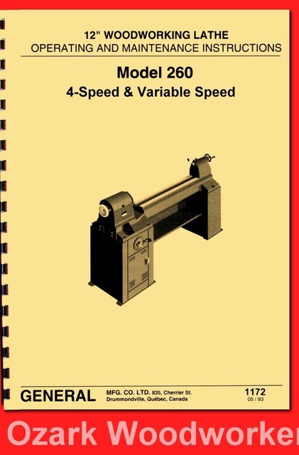 General Model 260 12 Variable Speed Wood Lathe Operating Parts