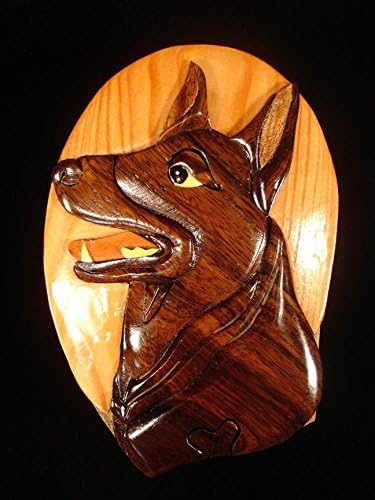 Hand Carved Wood Art Intarsia Black German Shepherd Dog