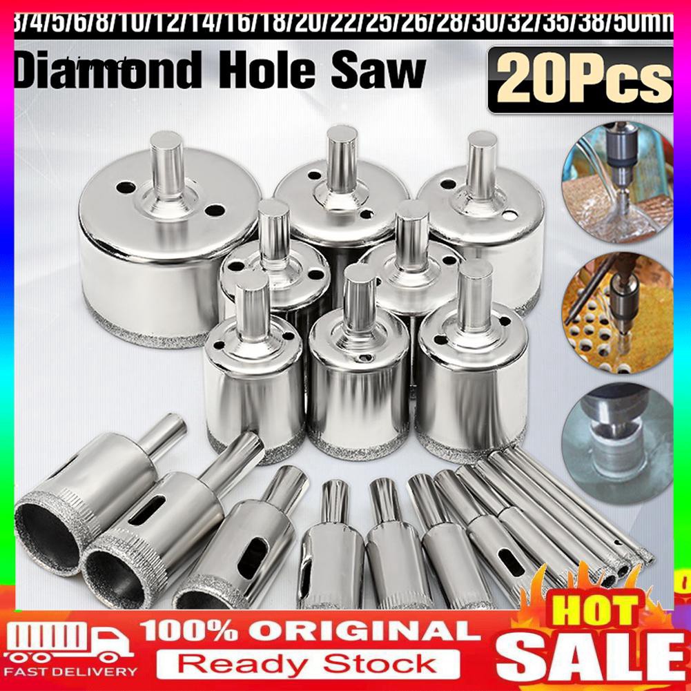 Cod 20pcs 3 50mm Diamond Drill Bits Set Glass Marble Granite Hole