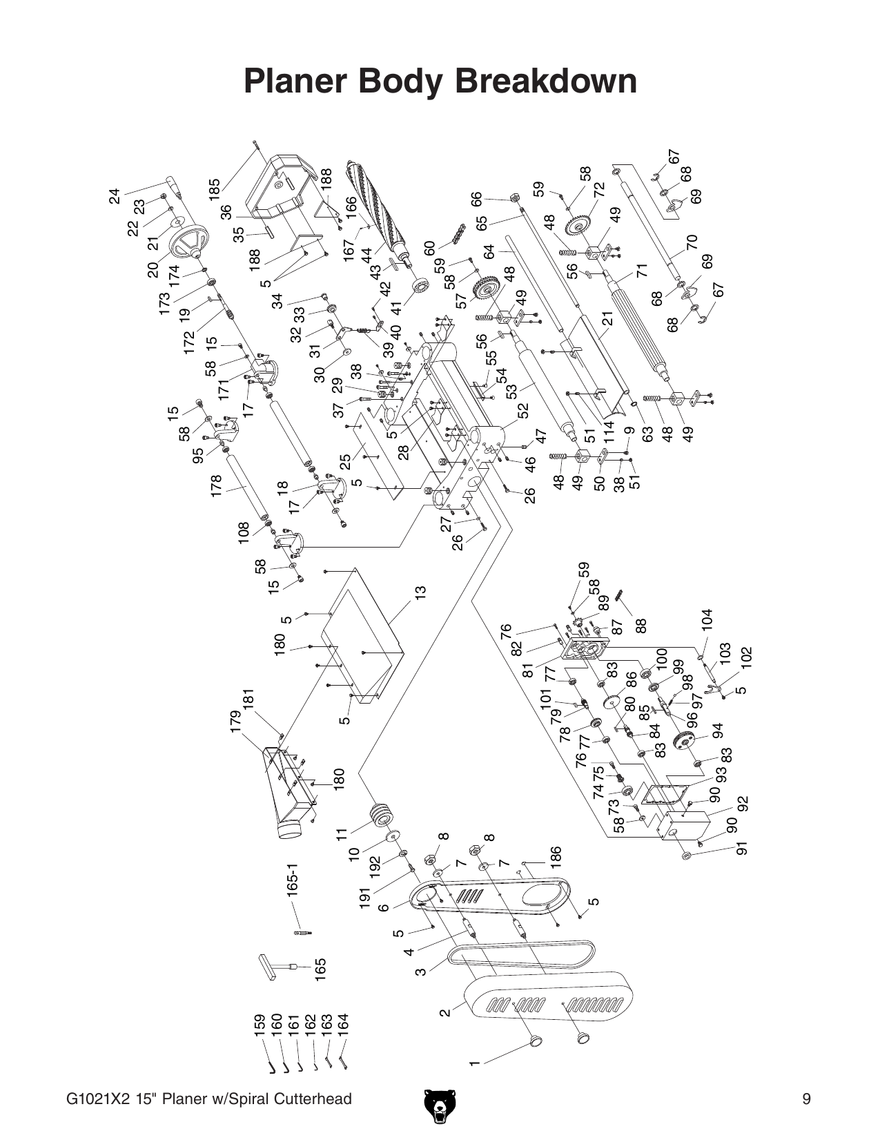 Grizzly 20 planer parts. Black and decker planer parts. By selling directly to end users we provide the best quality products at the best price to professionals and hobbyists. Model g1033 is a 3 hp 20 planer with a 4 knife cutterhead roller extension tables and a magnetic onoff switch mounted to the headstock. Service questions parts requests or general ques tions about the machine please call or write us at the location listed below.