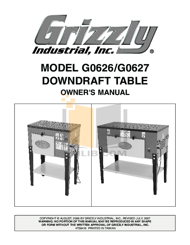 Download Free Pdf For Grizzly G0627 Downdraft Table Other Manual