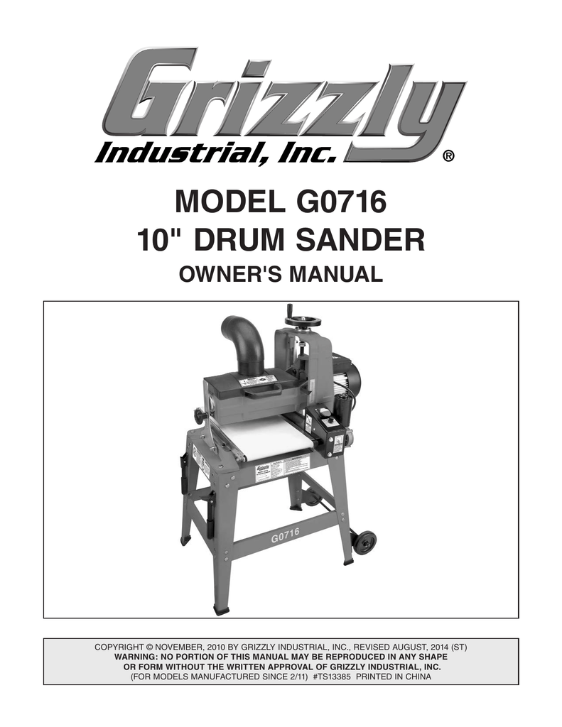 Model G0716 10 Drum Sander Manualzz