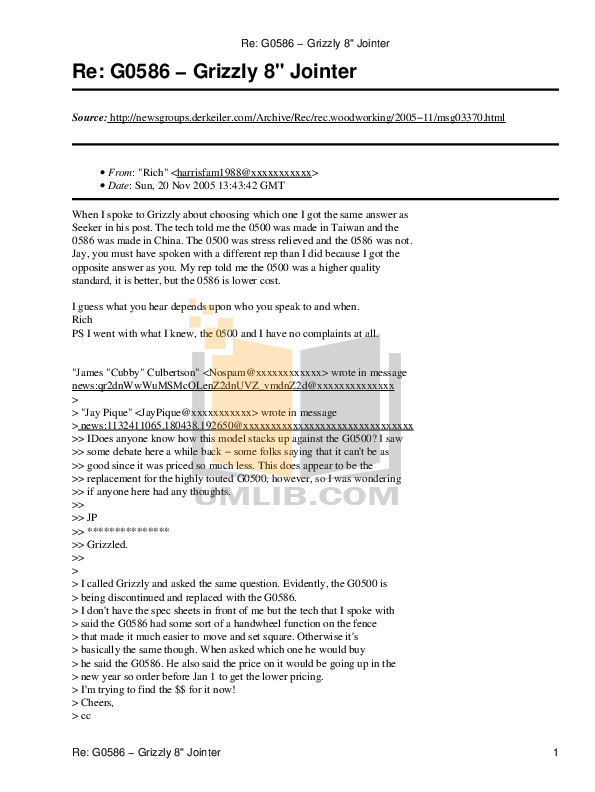 Download Free Pdf For Grizzly G0586 Jointers Other Manual