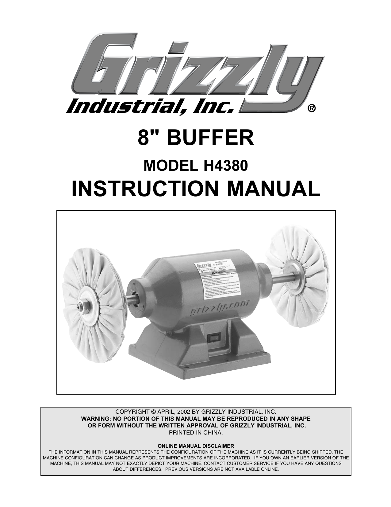 Grizzly Grinder H4380 User Manual Manualzz