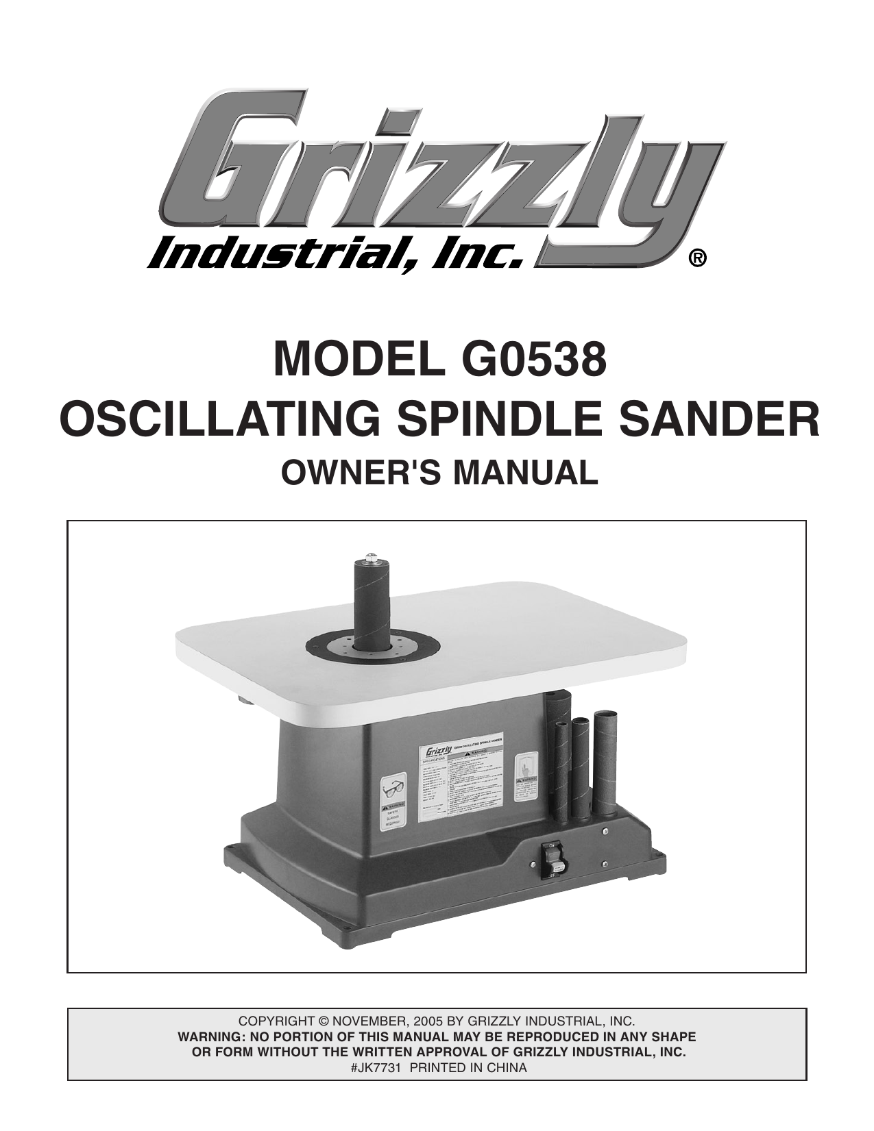 Grizzly Sander G0538 User Manual Manualzz