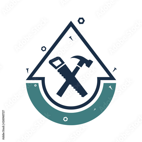 Repair Services Logo Icon Tools Hammer Hand Saw Vector