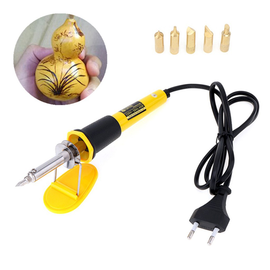 Ac220v 40w Eu Plug Wood Burning Soldering Pen With 5 Tips Shopee