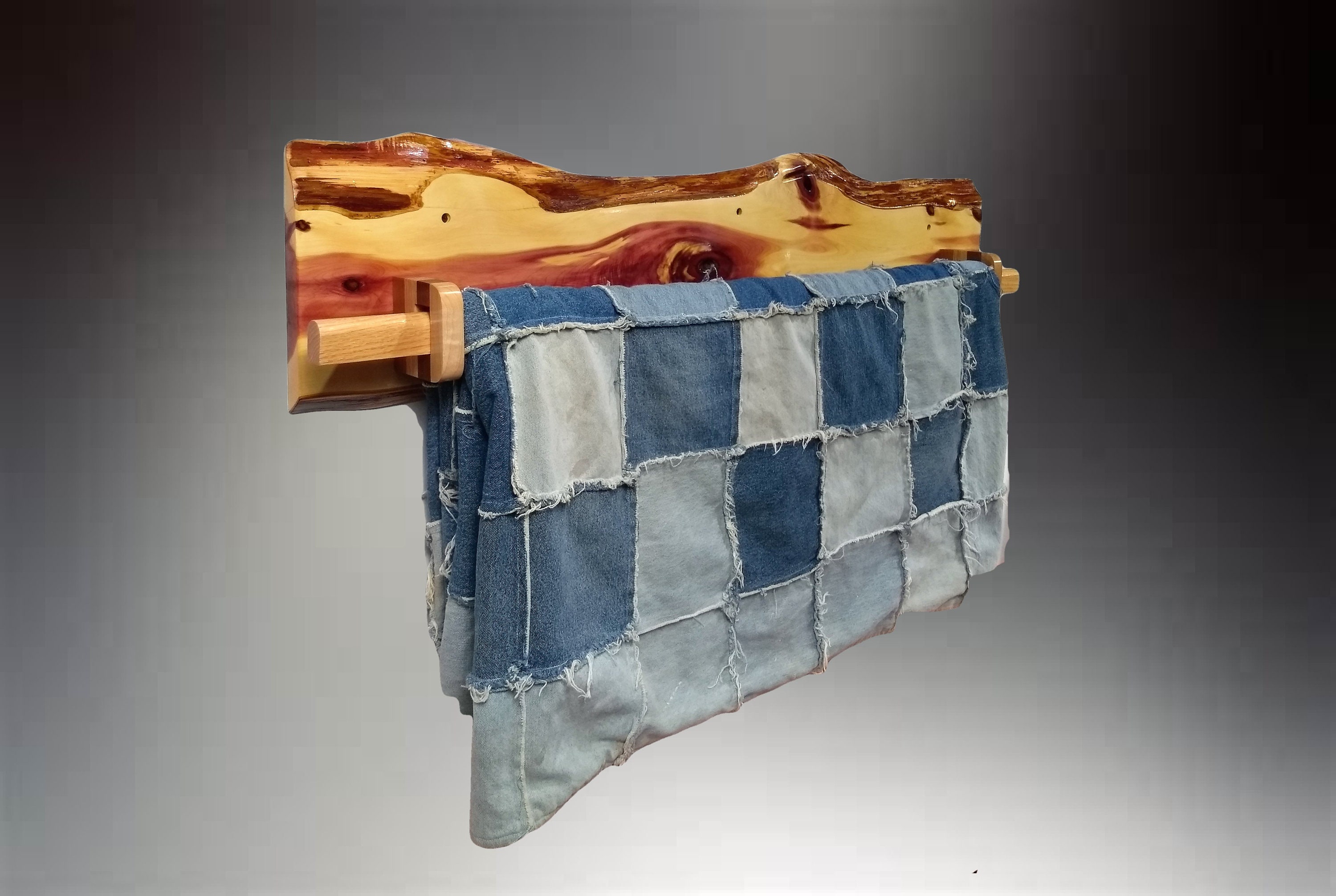 Rustic Hanging Wood Quilt Rack Live Edge Knotty Red Cedar Home Cabin Decor Gift Free Shipping