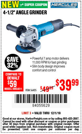 Coupon To Save On 4 1 2 Angle Grinder Harbor Freight Tools