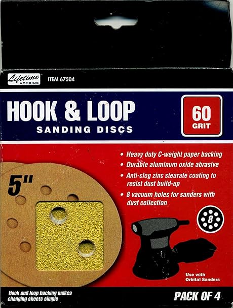 5 In 60 Grit Hook And Loop Sanding Discs 4 Pk