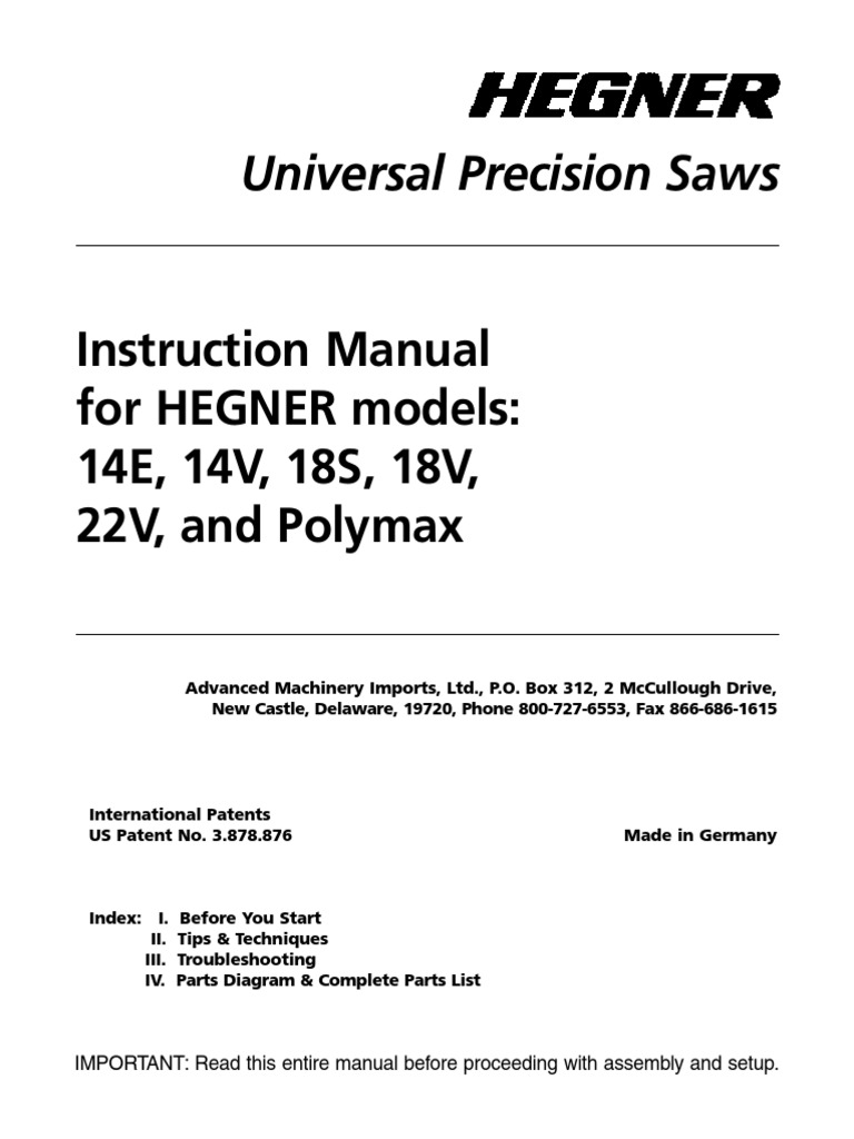 Hegner Manual Pdf Belt Mechanical Blade