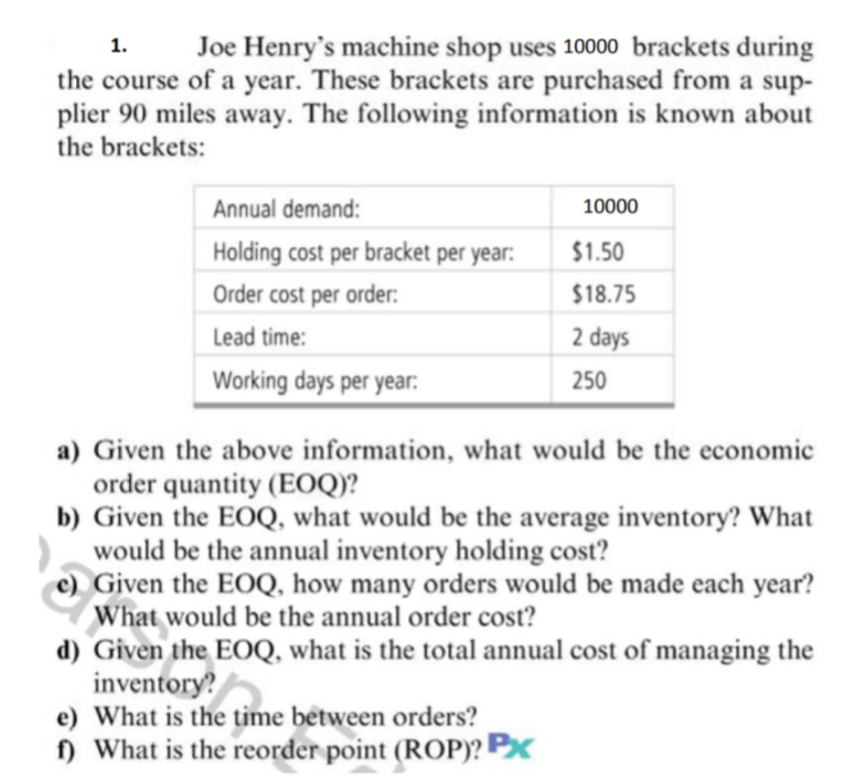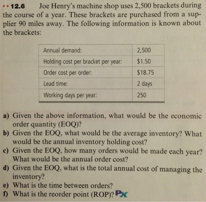 Problems Px Ieu Edu Henry S Machine Shop Uses 2 500 Brackets