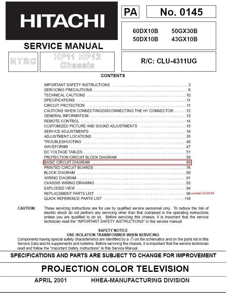 Hitachi 43gx10b 50gx30b 50dx10b 60dx10b And 44 Similar Items