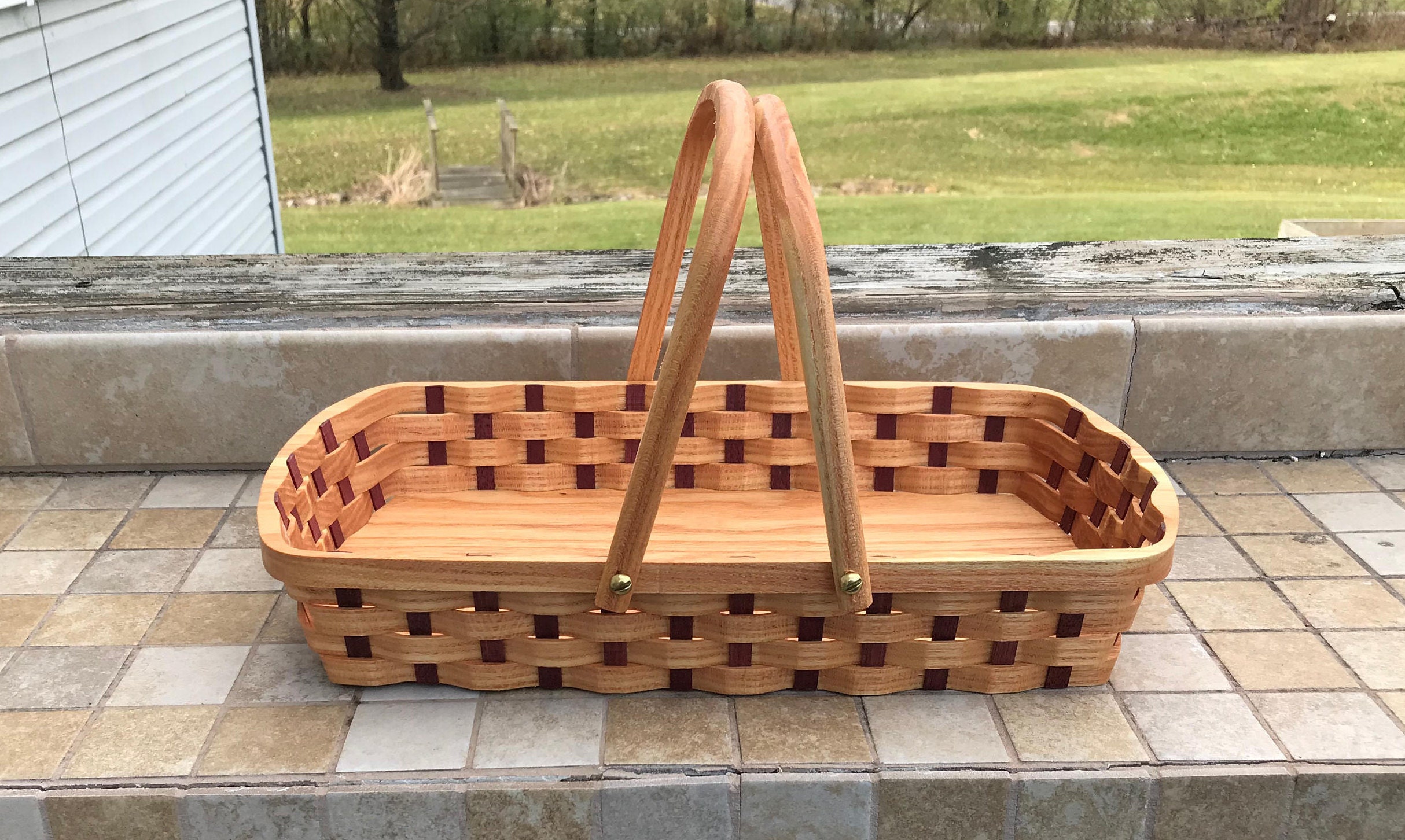 Wooden Bread Serving Basket Honey Locust Wood