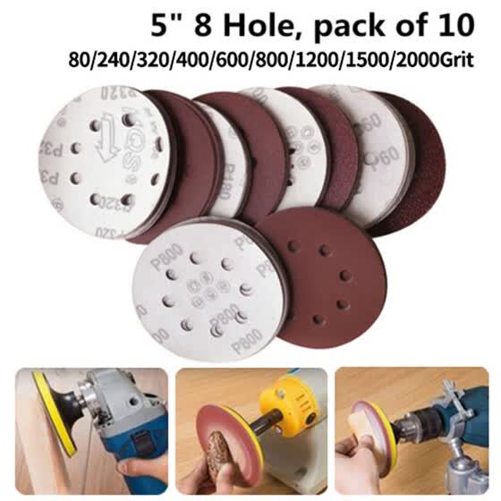 Qoo10 100 Pcs 5 Inch 6 Hole Hook And Loop Sandpaper Sanding Disc