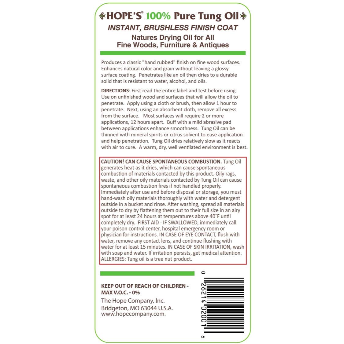 Hope S 100 Pure Tung Oil Penetrating Wood Finish One 16 Fl Oz