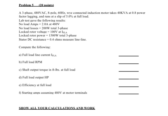 Solved A 3 Phase 480vac 8 Pole 60hz Wye Connected Ind