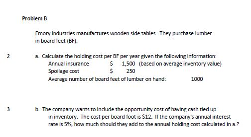 Solved Problem B Emory Industries Manufactures Wooden Sid