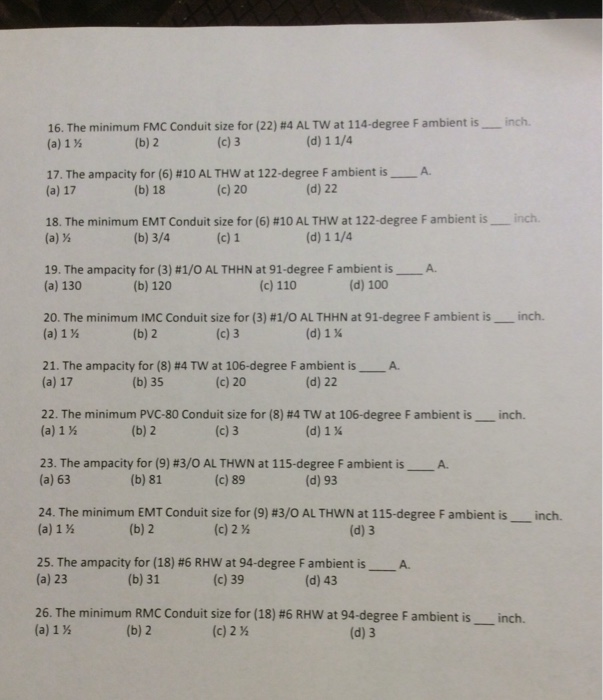 16 The Minimum Fmc Conduit Size For 22 4 Altw Chegg Com
