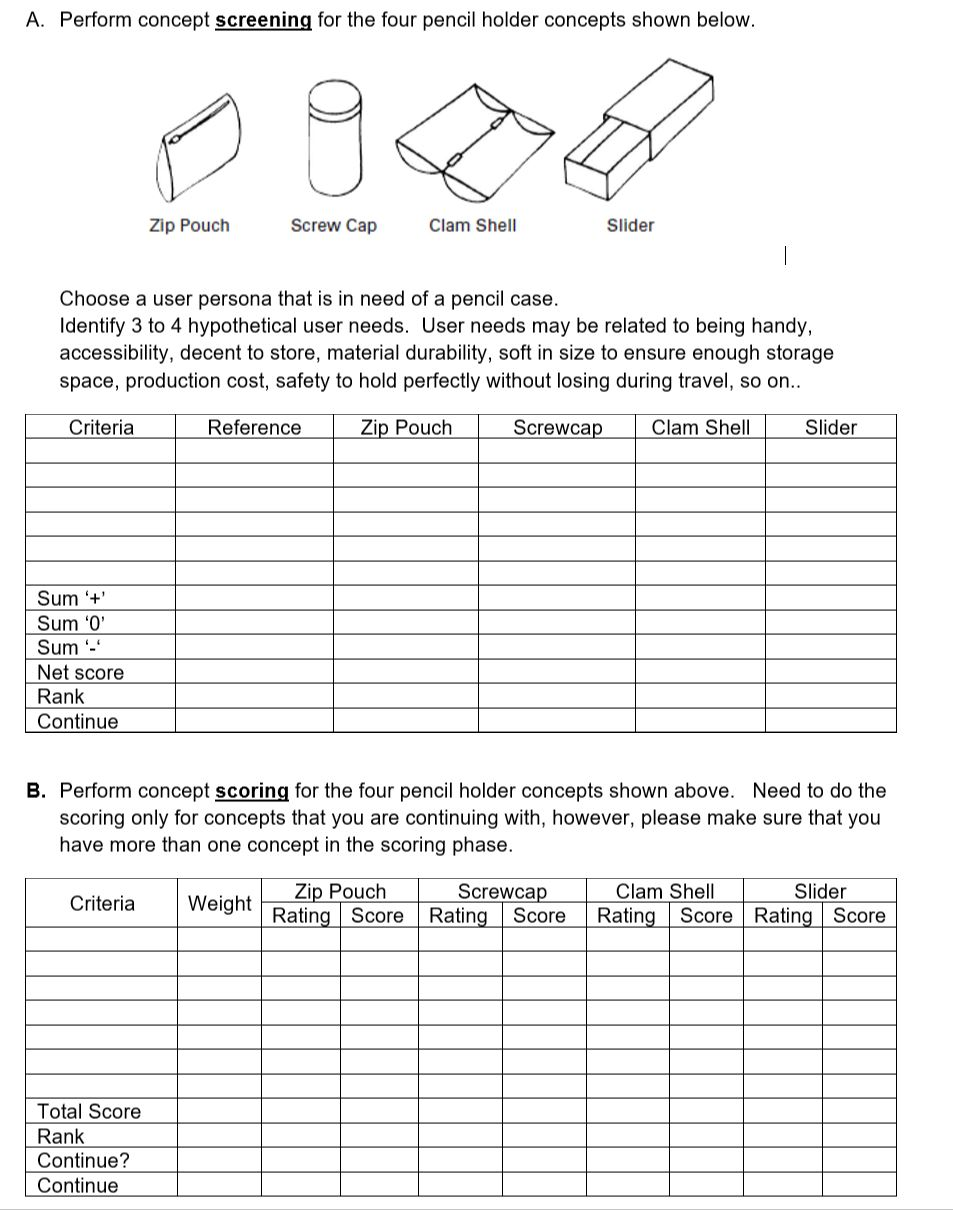 A Perform Concept Screening For The Four Pencil H Chegg Com