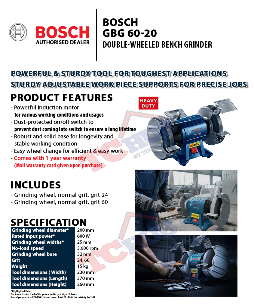 Bosch Gbg 60 20 Double Wheeled Bench Grinder Lazada Singapore