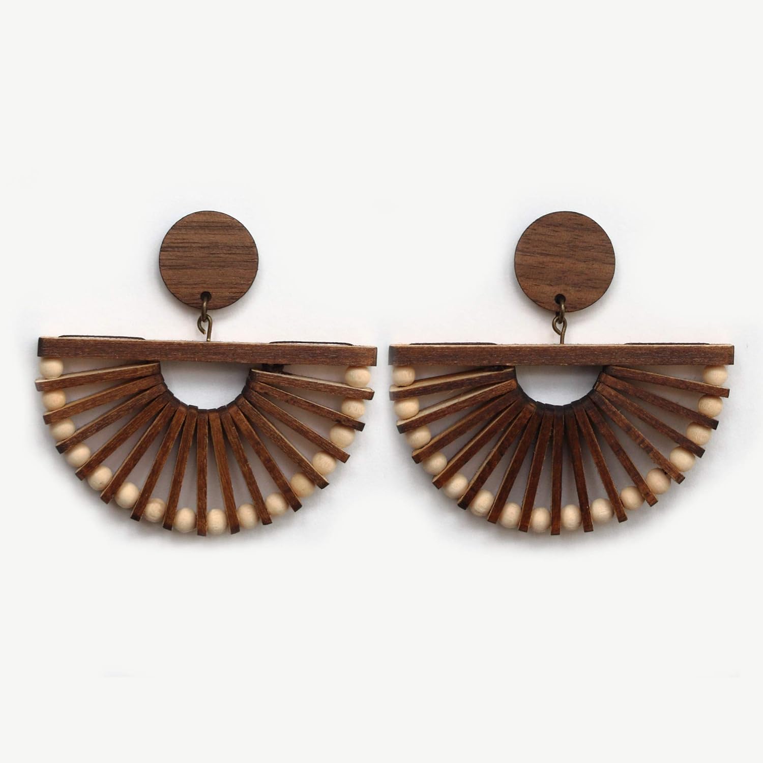 Amazon Com Beaded Wood Half Circle Statement Earrings Handmade
