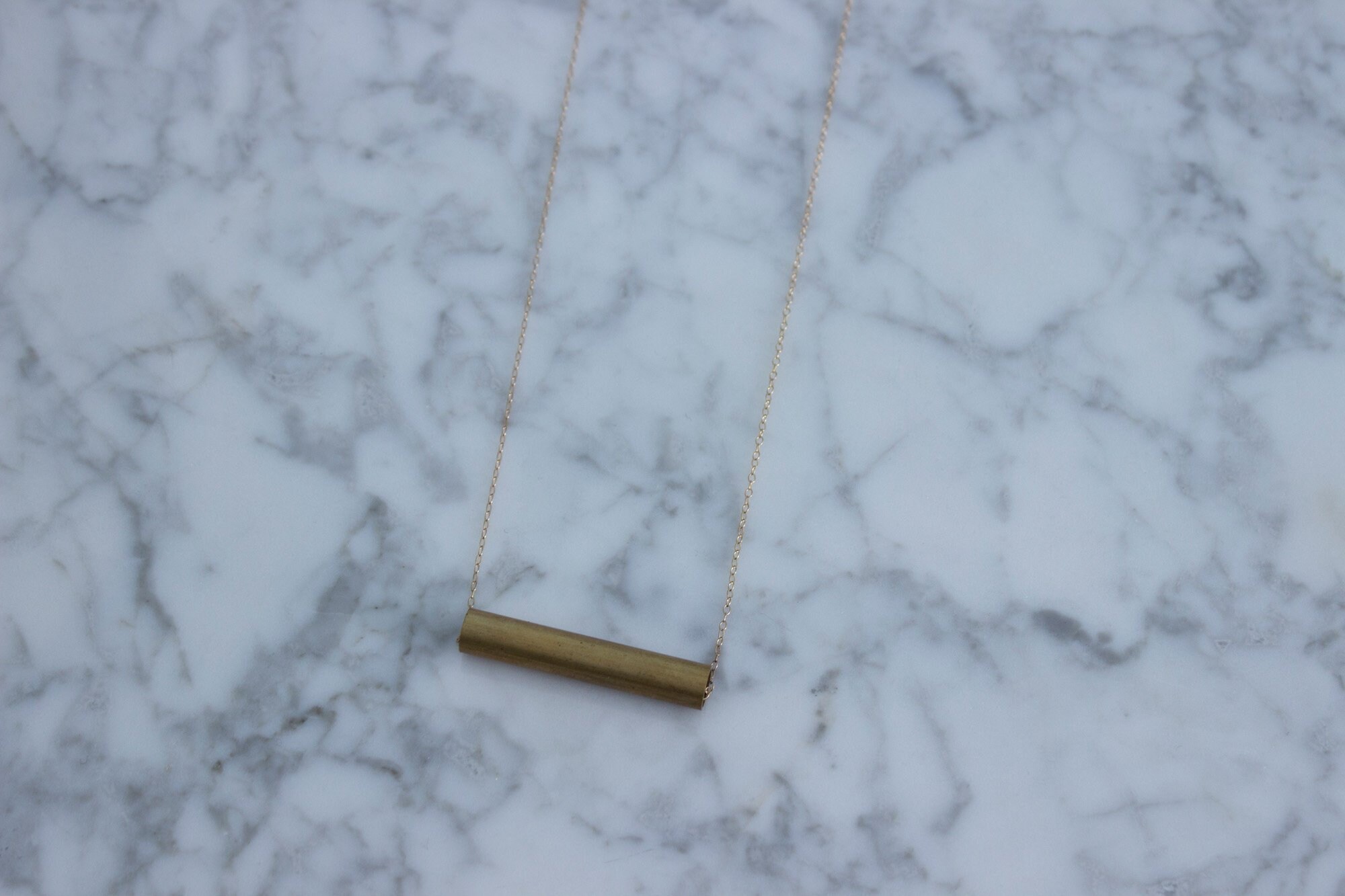 Vintage Industrial Cut Brass Bar On Delicate 14k Gf Necklace