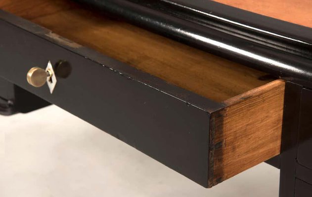Art Deco Black Ebonized Wood Leather Top Desk For Sale At Pamono