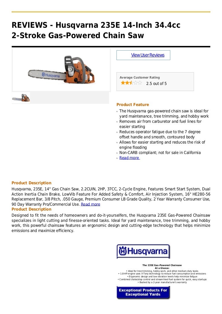 Husqvarna 235 E 14 Inch 34 4cc 2 Stroke Gas Powered Chain Saw