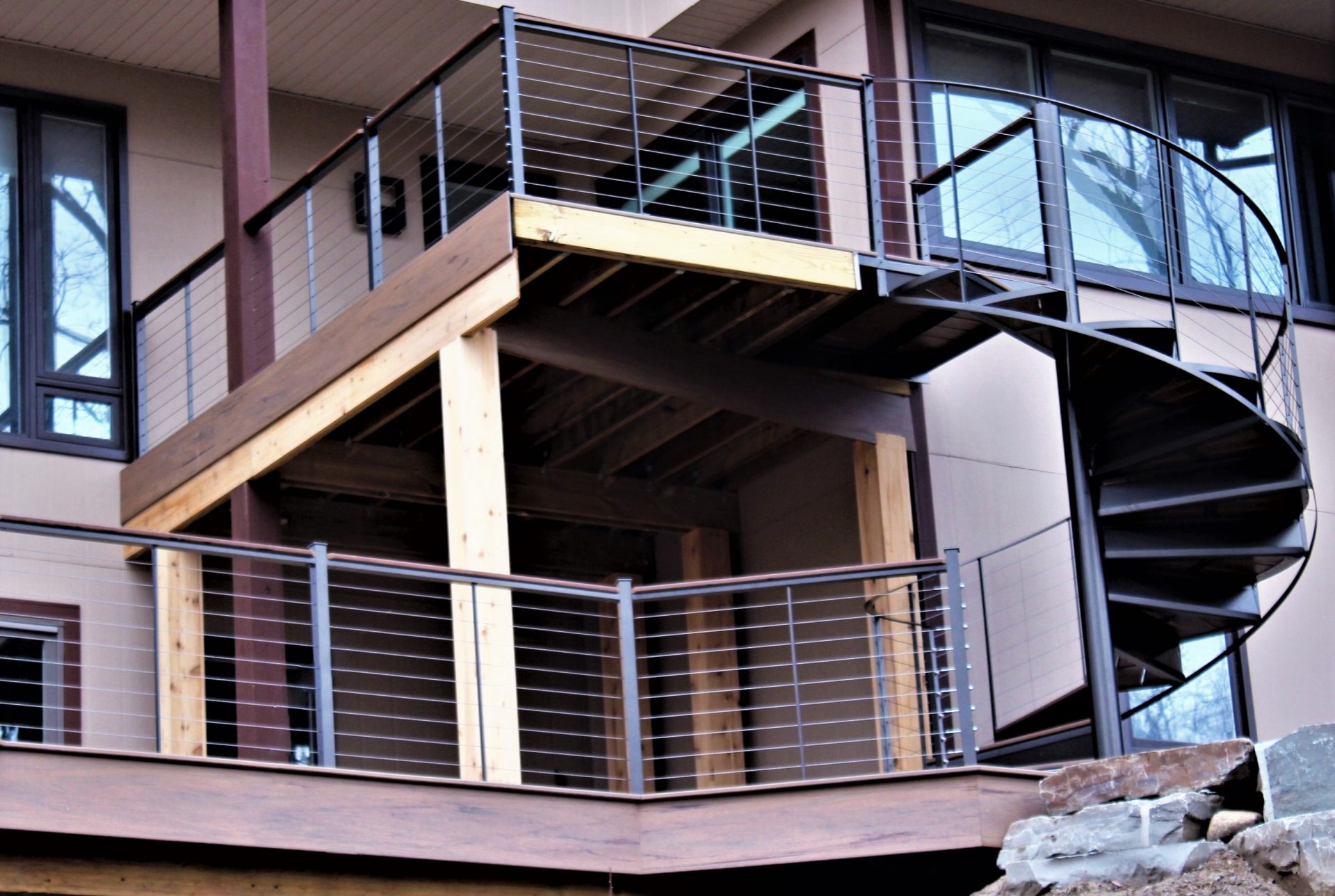 Aluminum Cable Deck Rail And Large Spiral Stairs Great Lakes