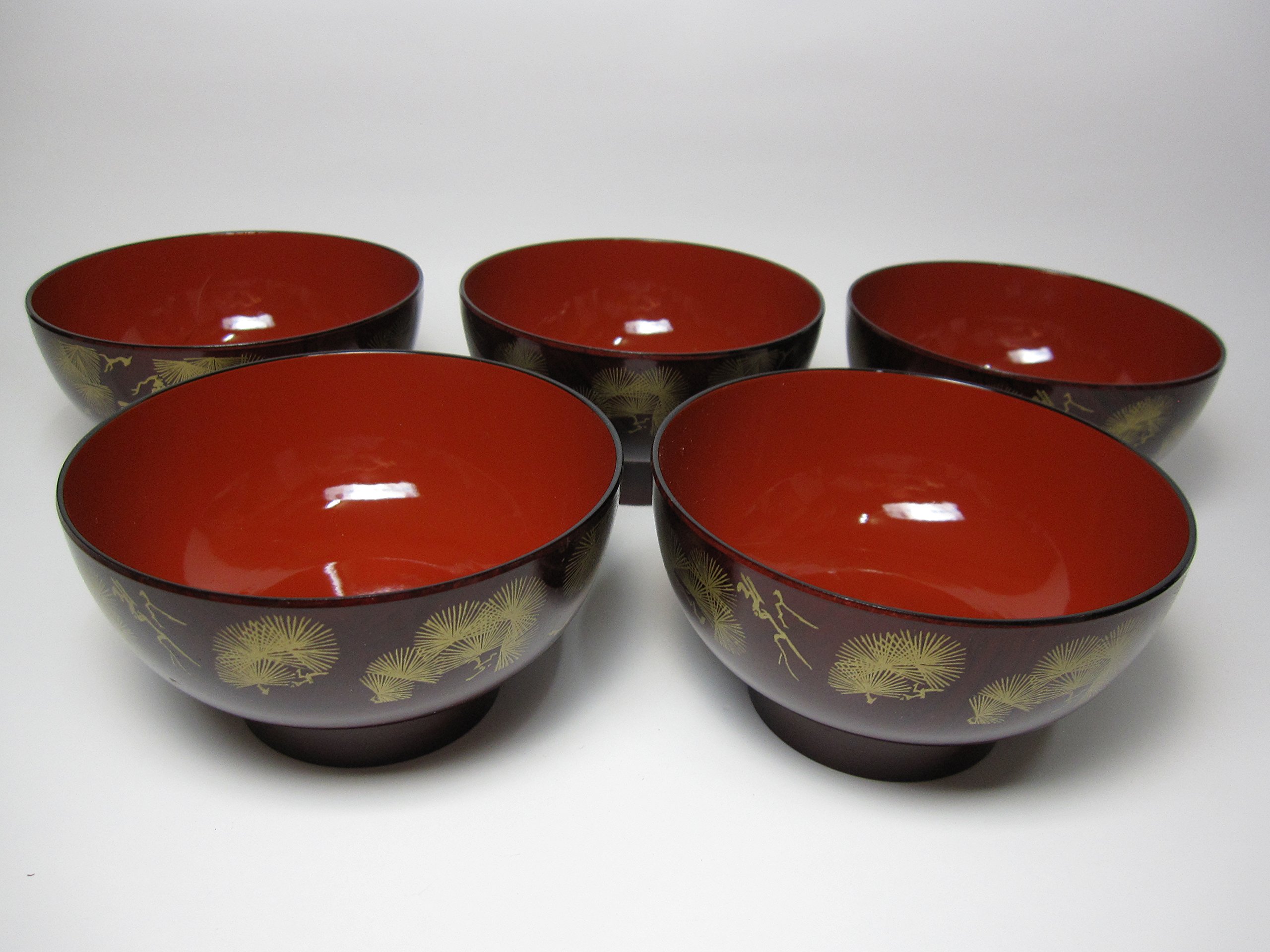 Japanese Lacquer Miso Soup Bowl 5pcs Set Diameter4 5inc Height2